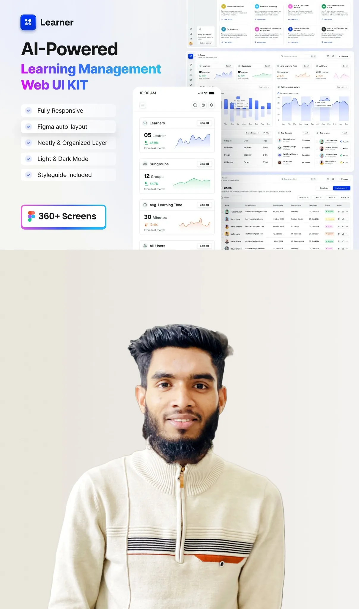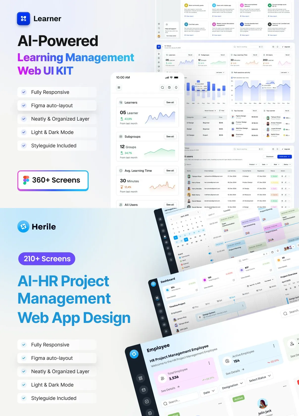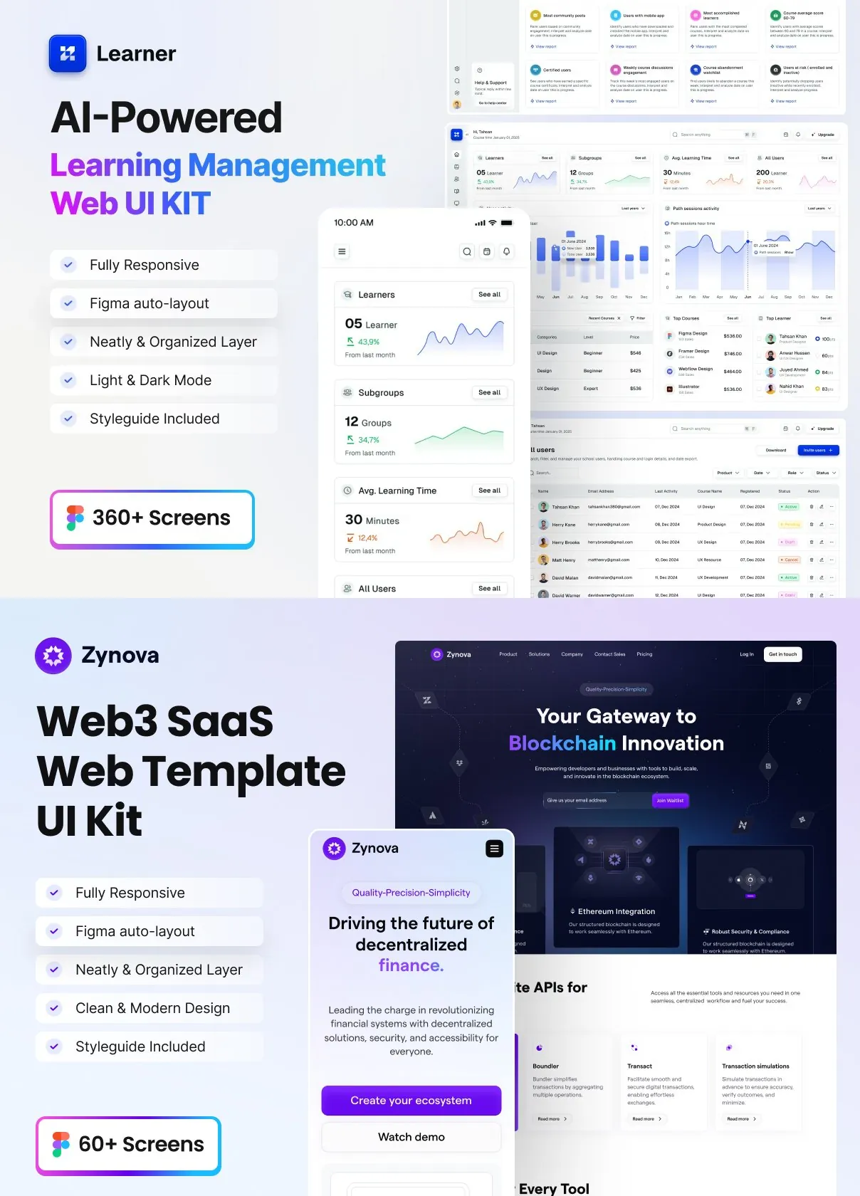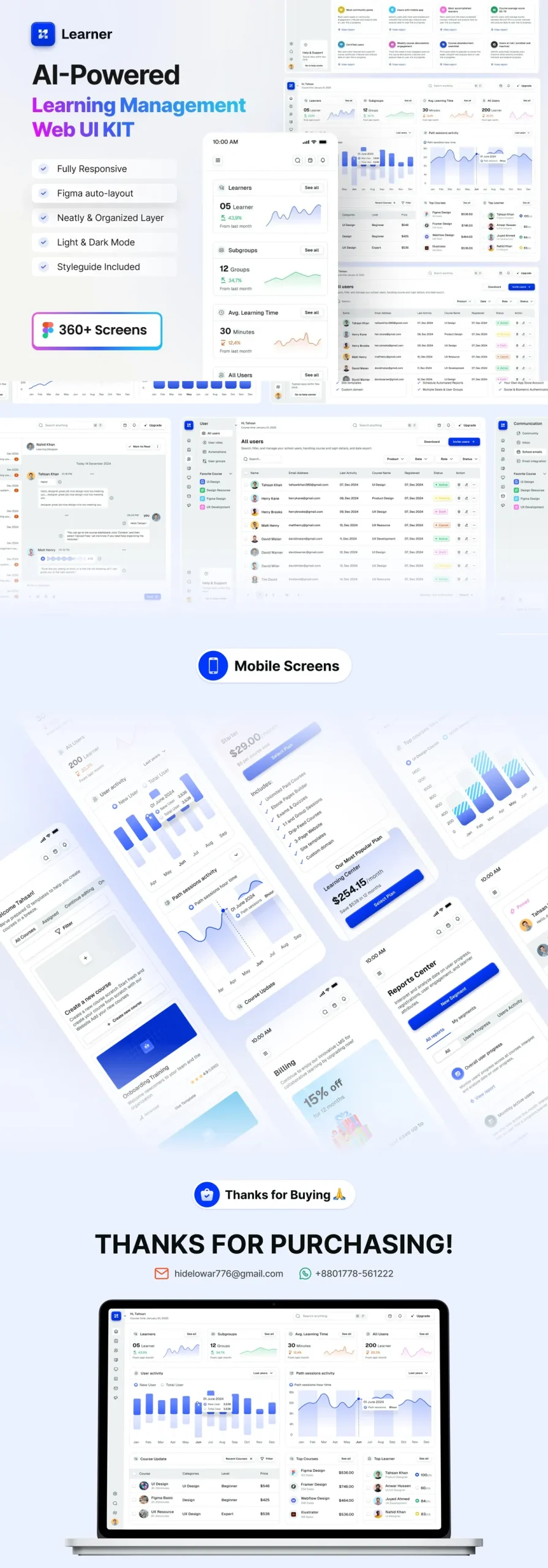 Learner offers an impressive library of over 360 meticulously designed screens that cover every aspect of a modern LMS platform. These screens are crafted with attention to detail and usability, enabling you to build a fully functional and visually appealing education platform quickly. The variety of screens supports diverse user journeys, from course browsing and enrollment to community interaction and performance analytics.
