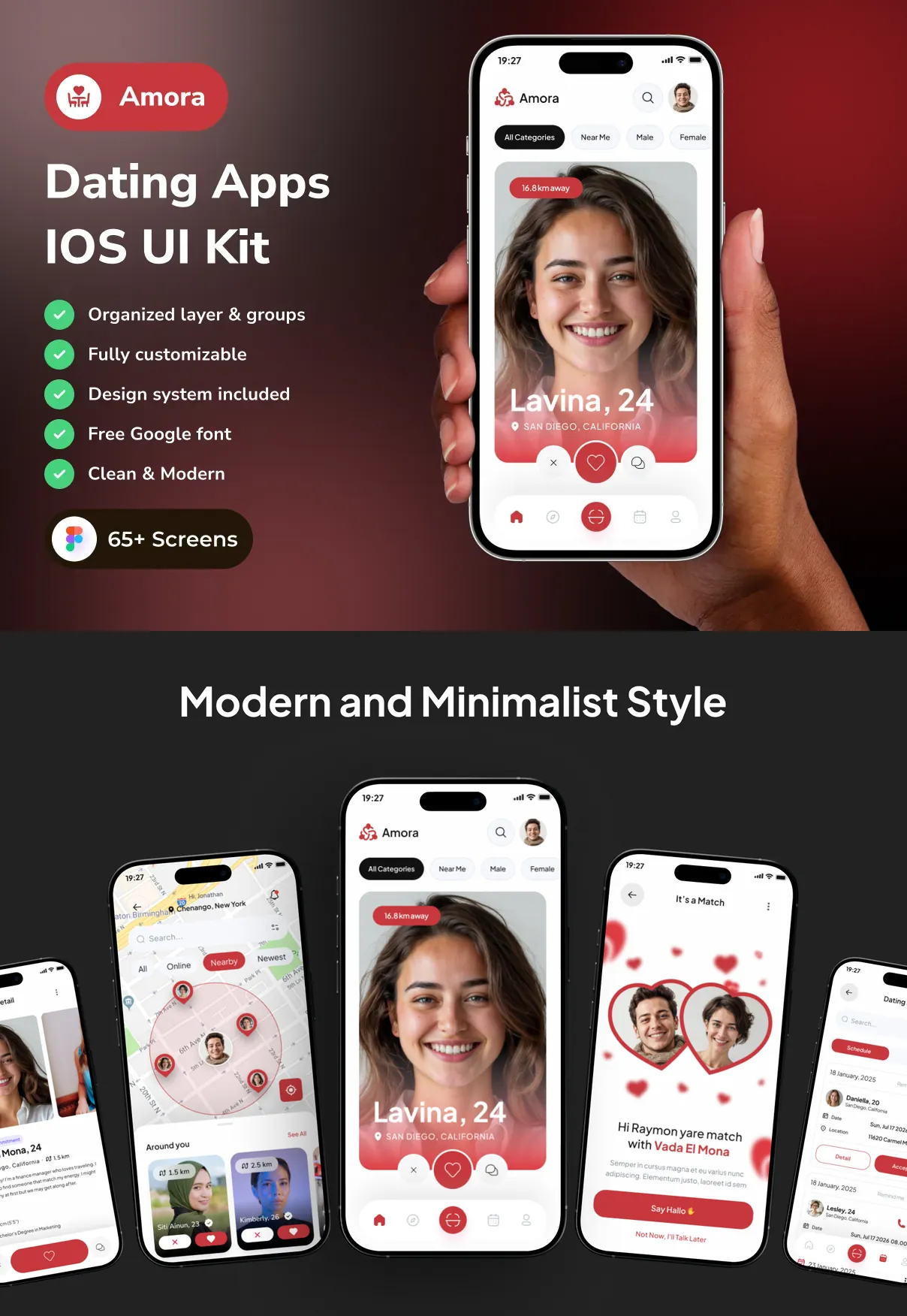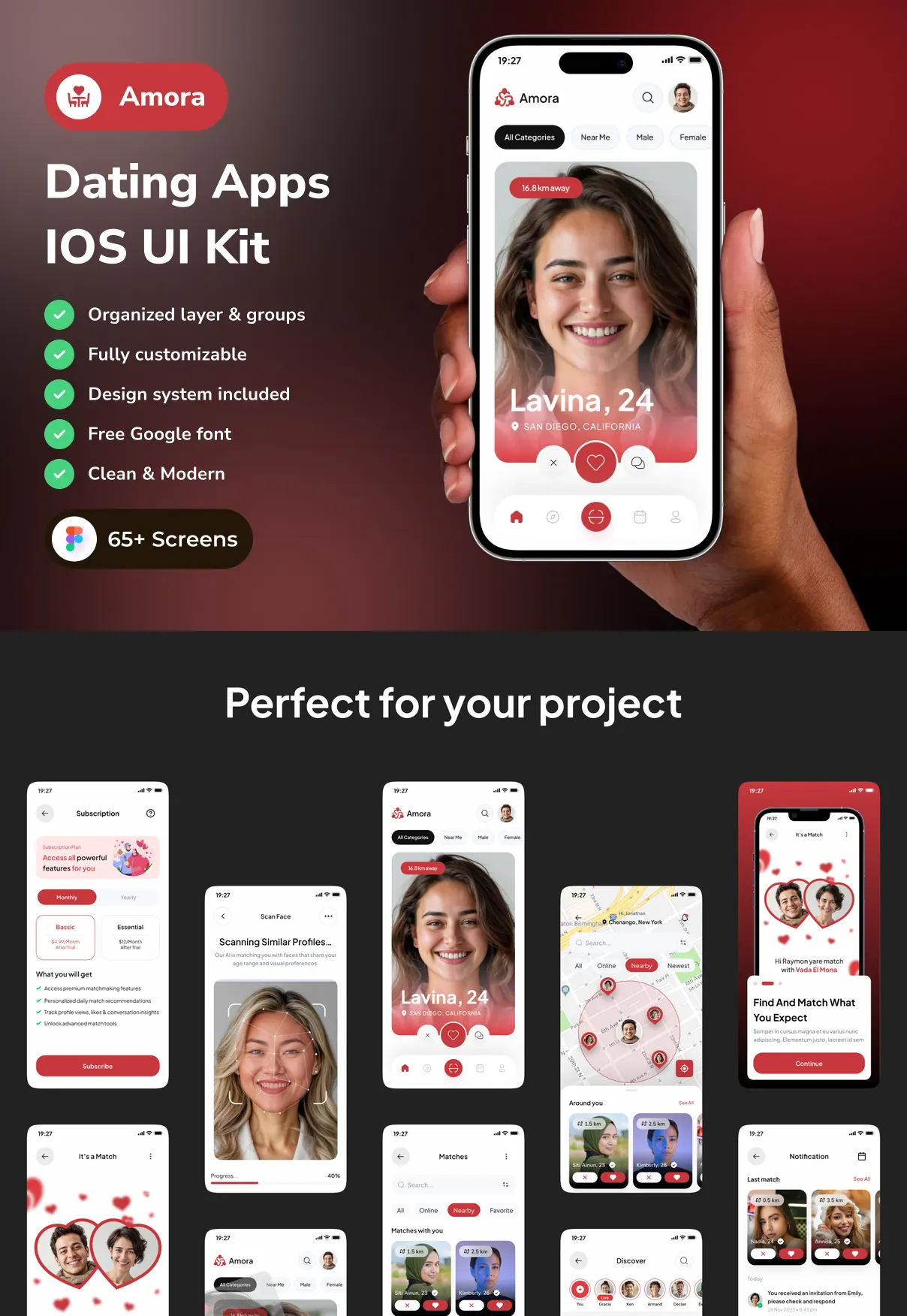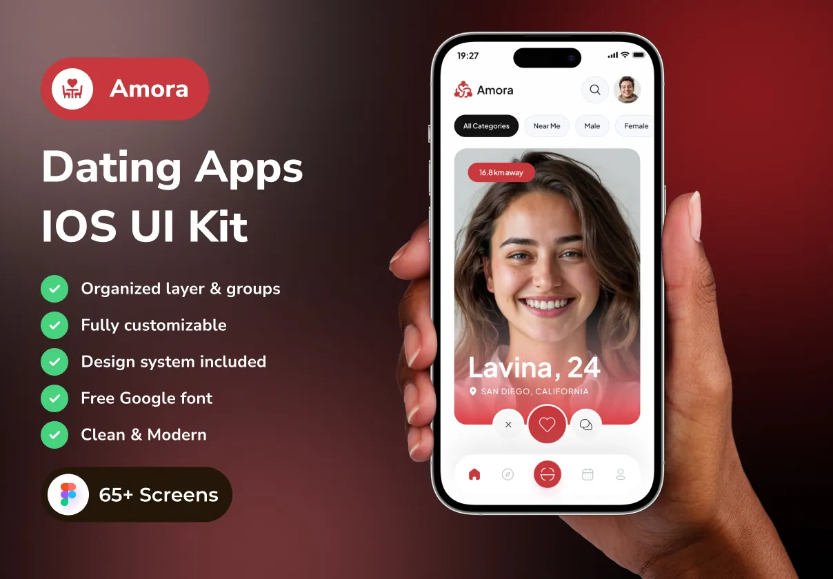 Amora is a modern and thoughtfully designed UI kit created for building engaging Dating and Social Connection apps on iOS. With 65+ professionally crafted screens, Amora simplifies the process of designing a smooth, attractive, and intuitive dating experience.