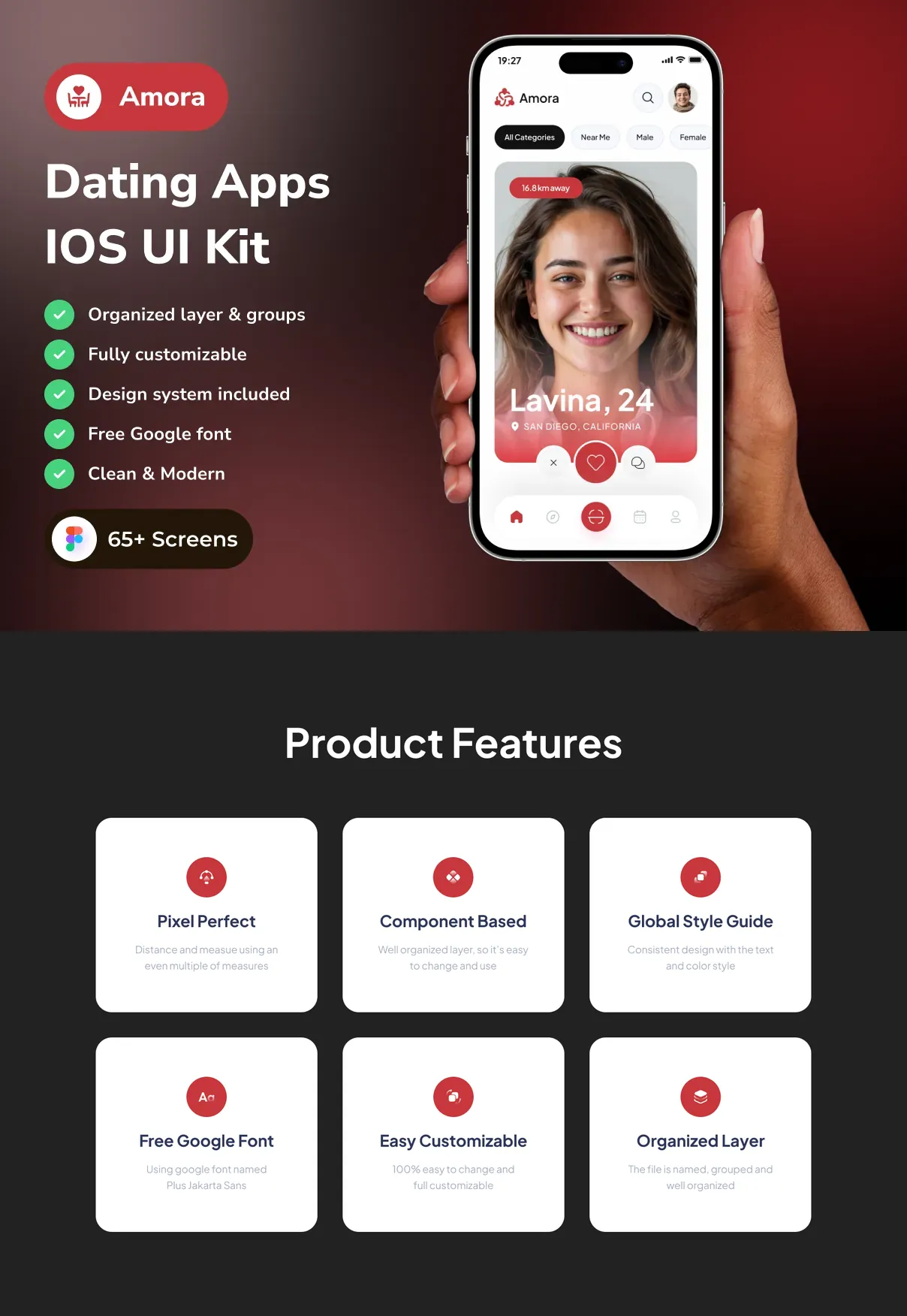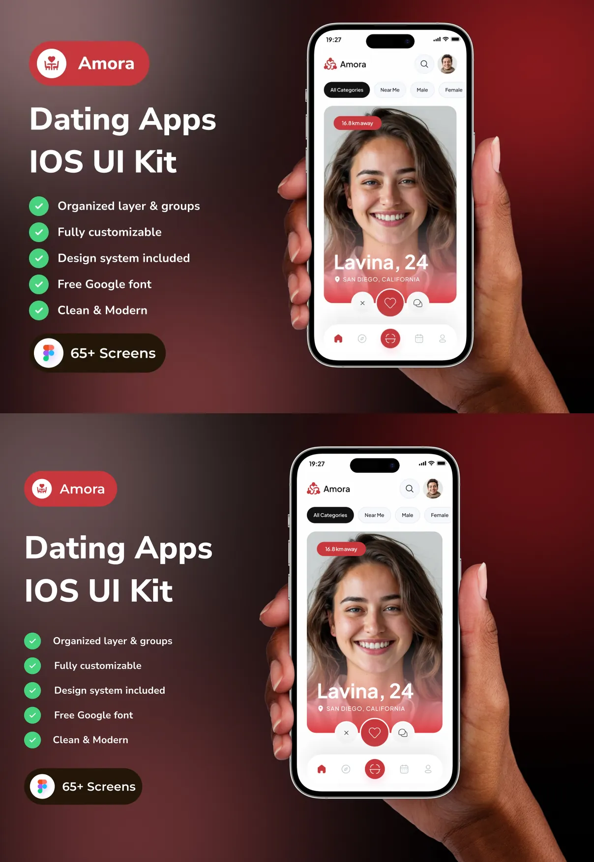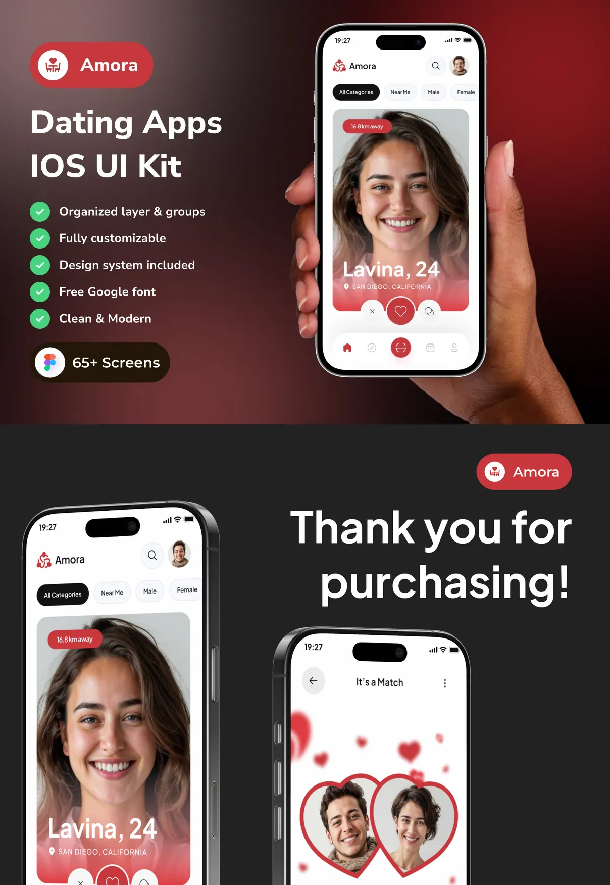 Amora is a modern and thoughtfully designed UI kit created for building engaging Dating and Social Connection apps on iOS. With 65+ professionally crafted screens, Amora simplifies the process of designing a smooth, attractive, and intuitive dating experience.