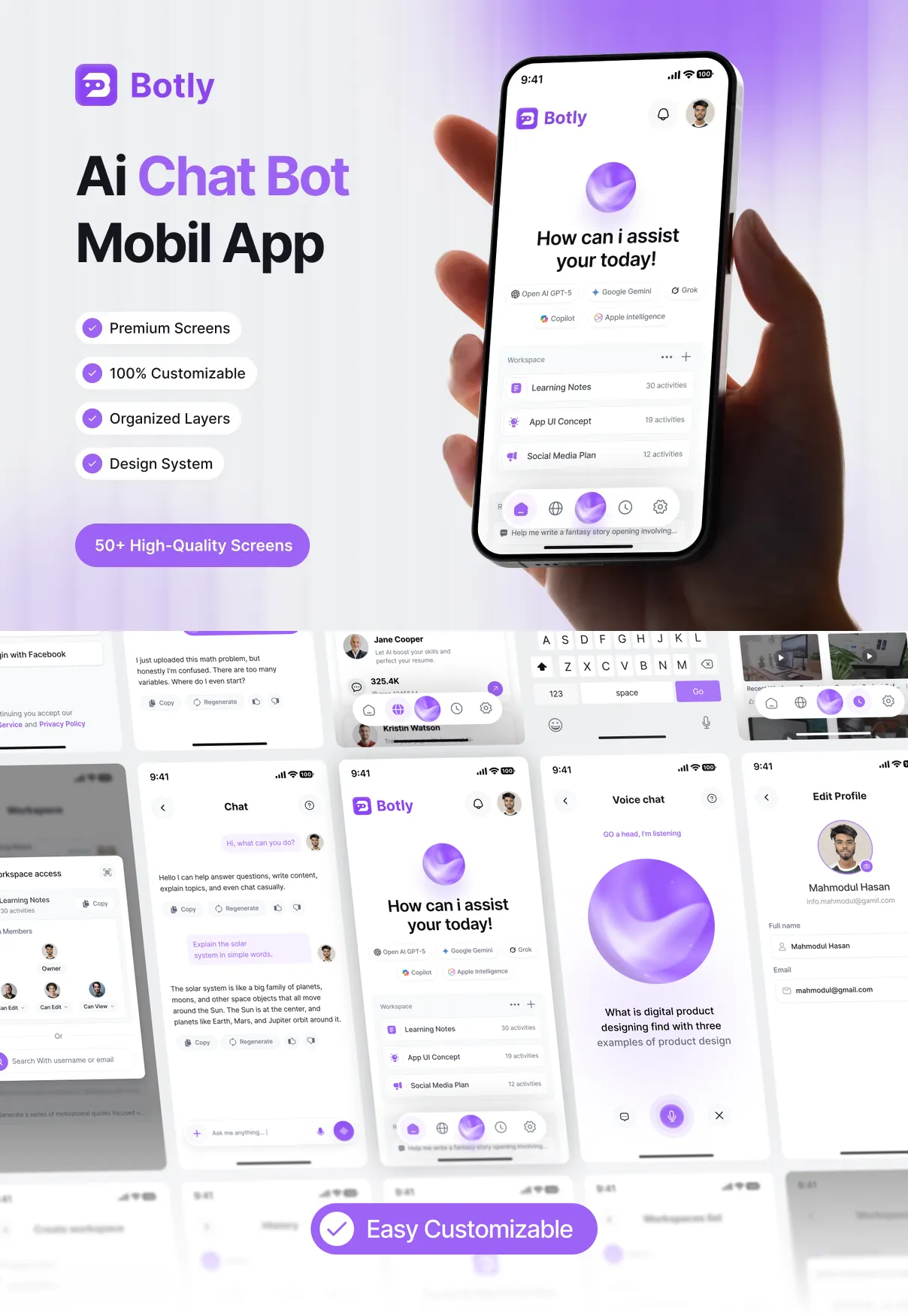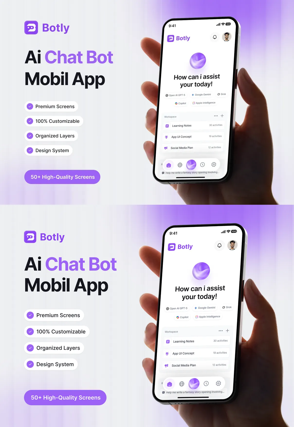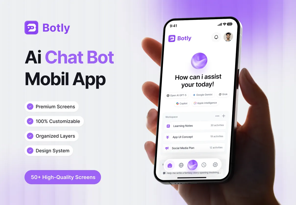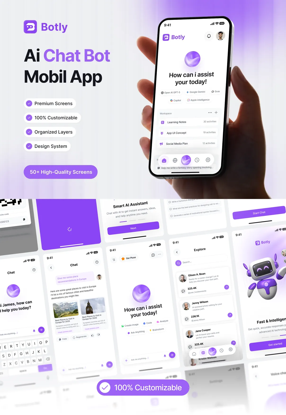 Modern and premium AI Chatbot Mobile App UI Kit crafted to help you design high-converting shopping experiences faster.