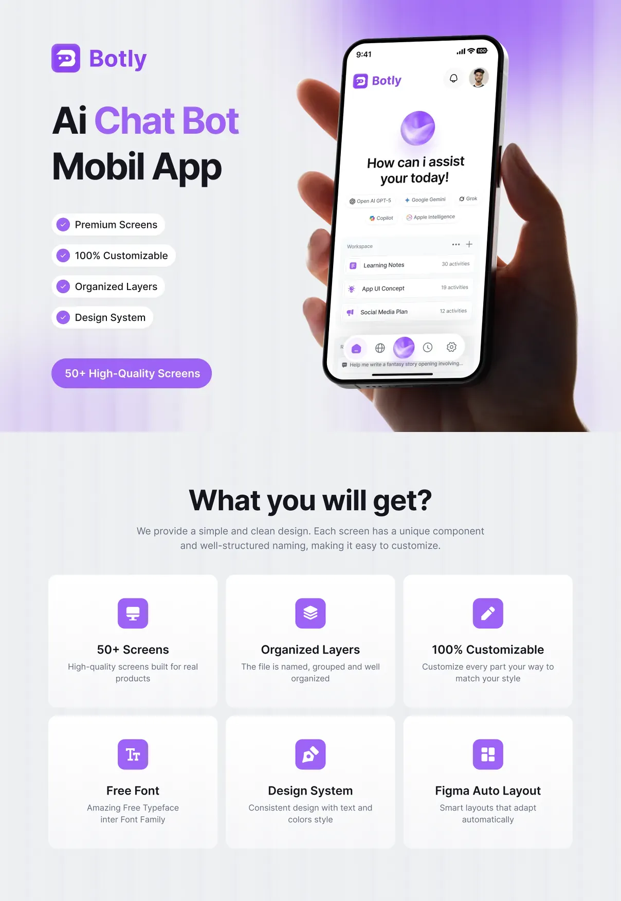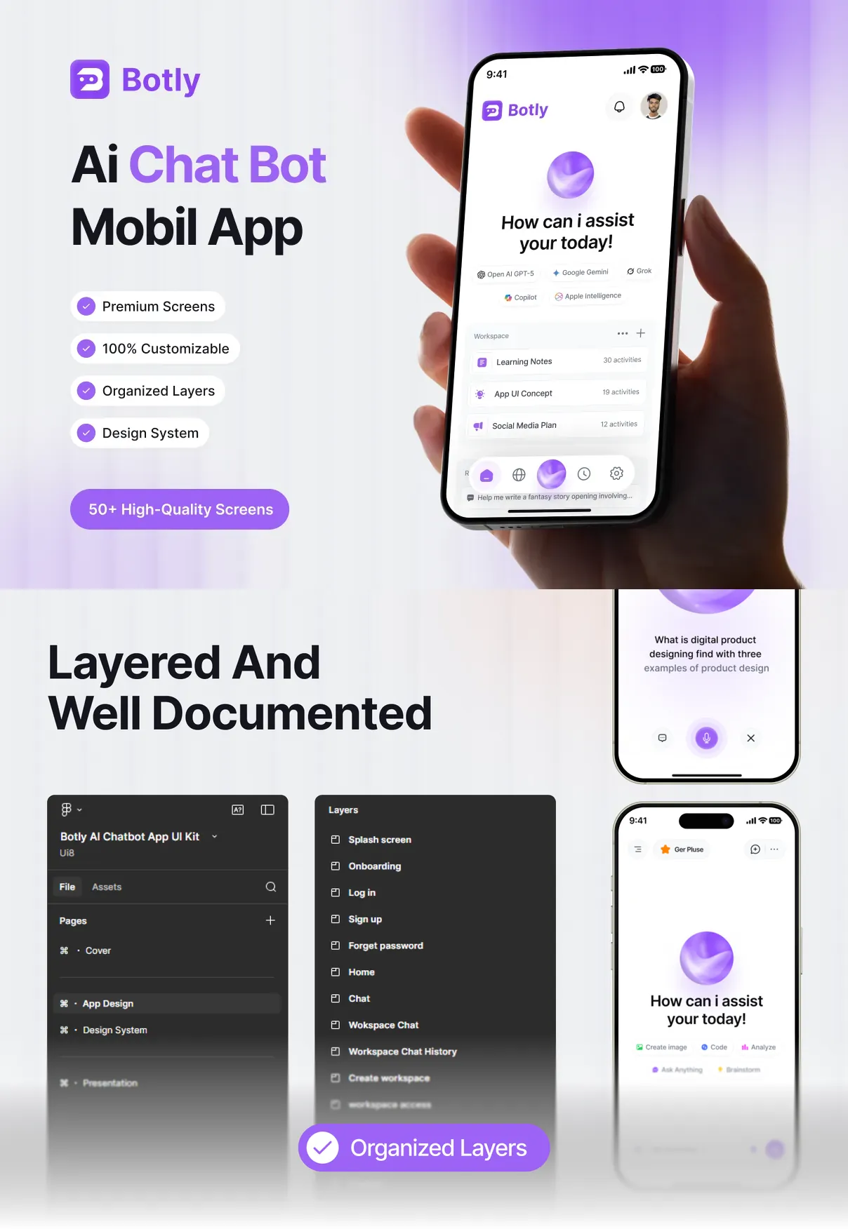 This kit includes 50+ beautifully designed screens and a complete design system, built with clean structure and fully organized layers for easy customization.