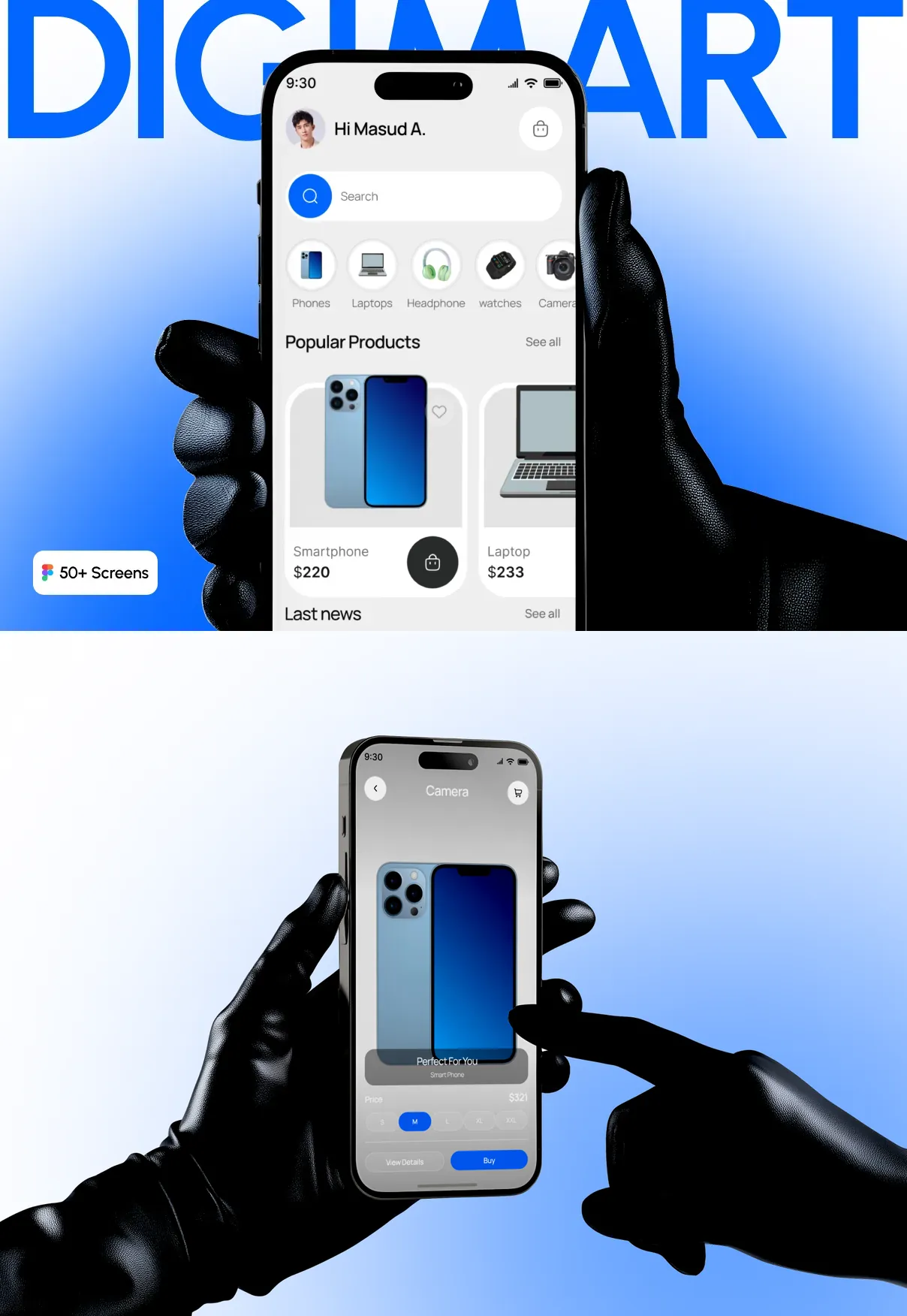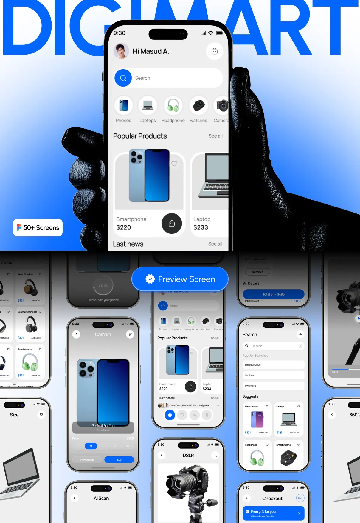DigiMart is a modern and user-friendly Electronics E-Commerce Mobile UI Kit designed for online electronics stores, gadget marketplaces, and digital retail startups. With a clean layout and intuitive shopping experience, DigiMart helps customers easily browse, purchase, and manage electronic products through a seamless mobile platform.