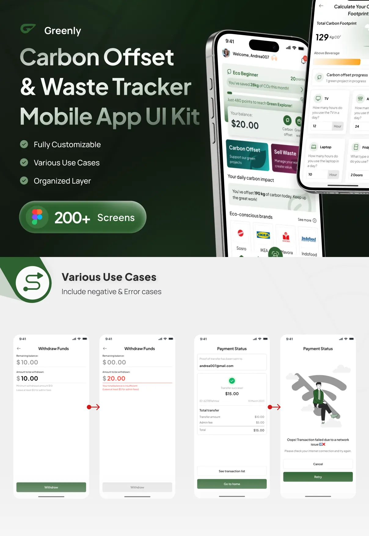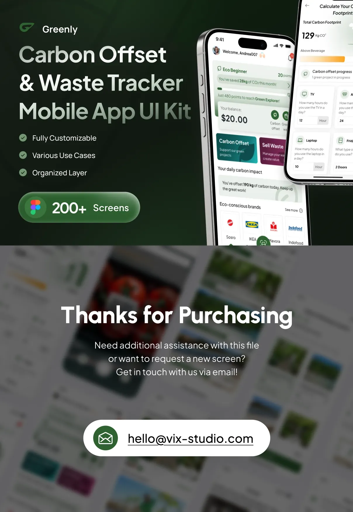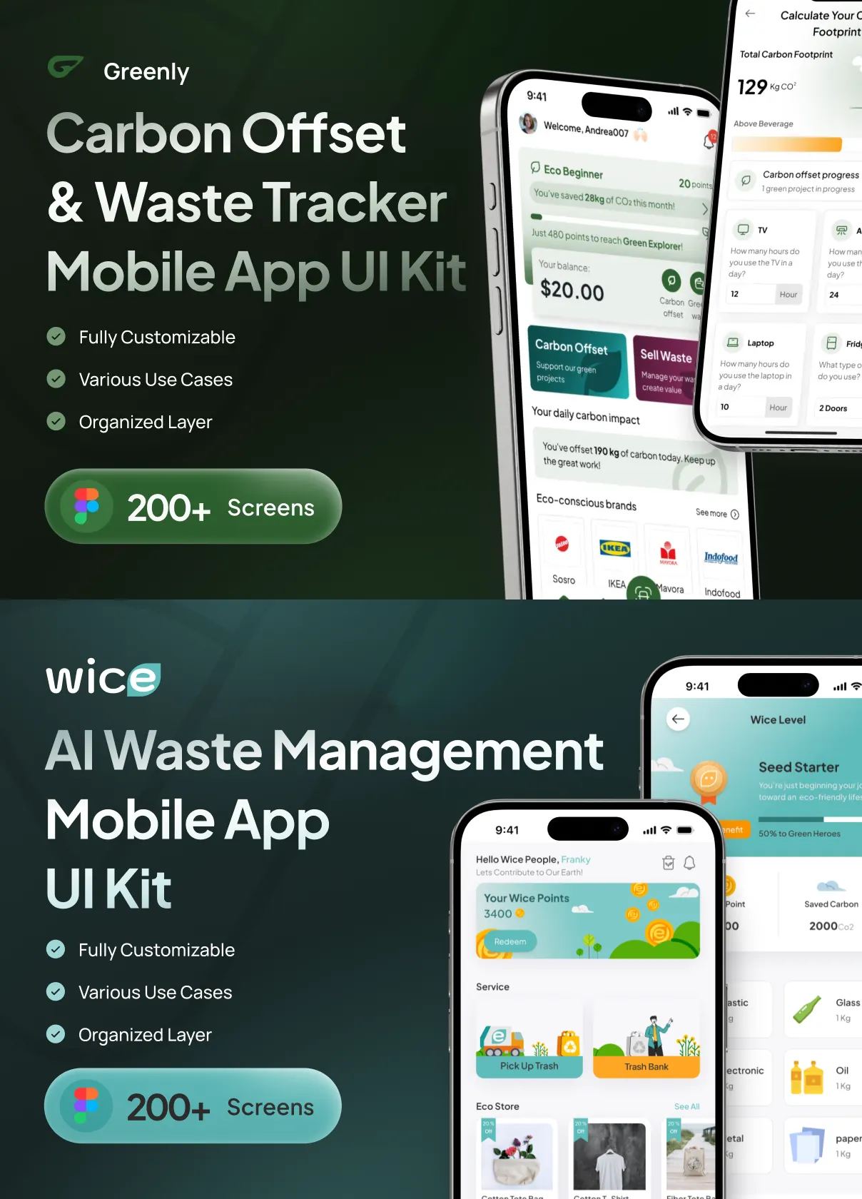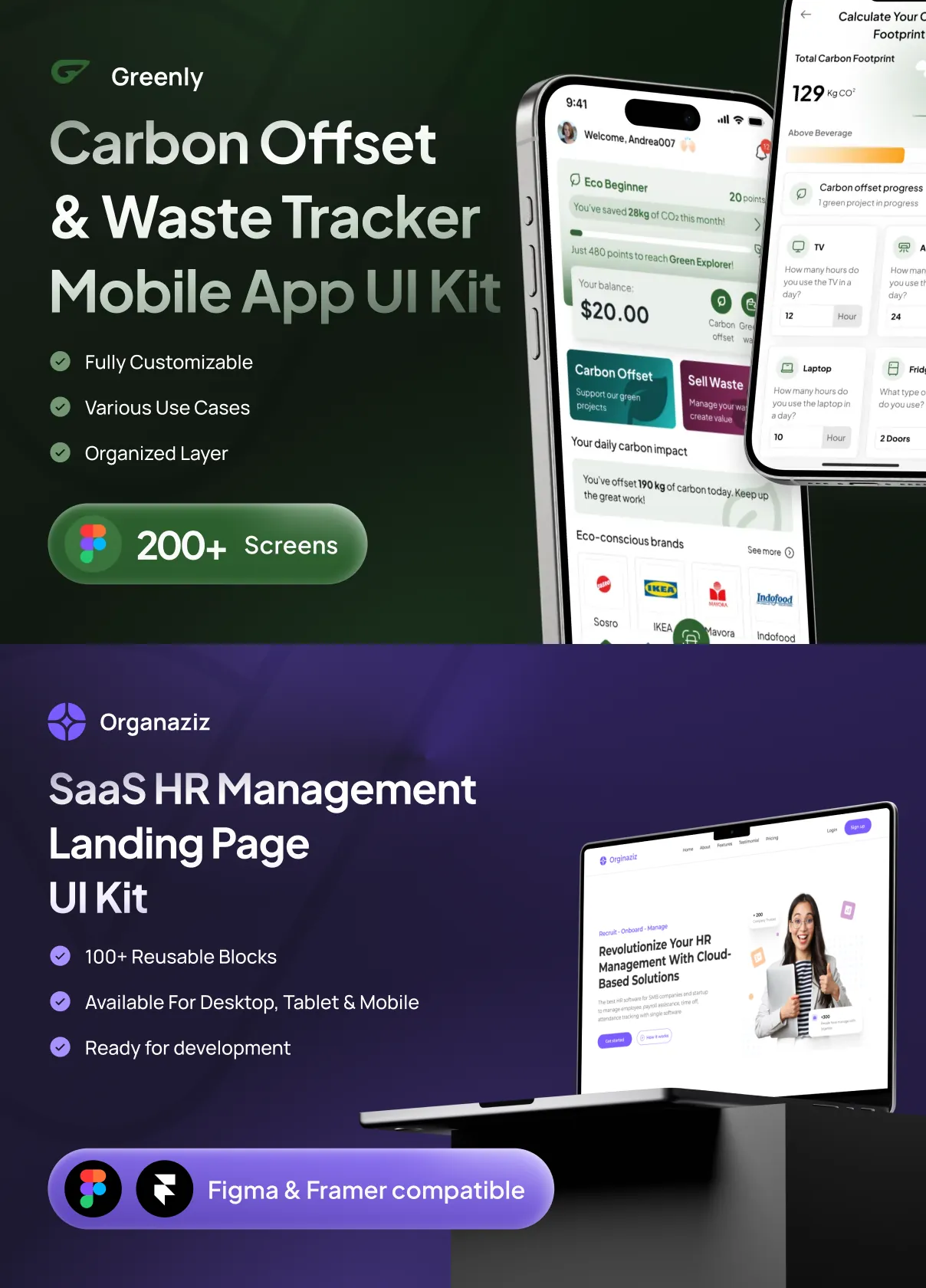 Every element in Greenly’s UI kit is 100% customizable to fit your brand’s unique style. Designers can easily adjust colors, typography, layouts, and interactive components using the provided Figma files, which support auto-layouts, grids, and variables for streamlined customization.