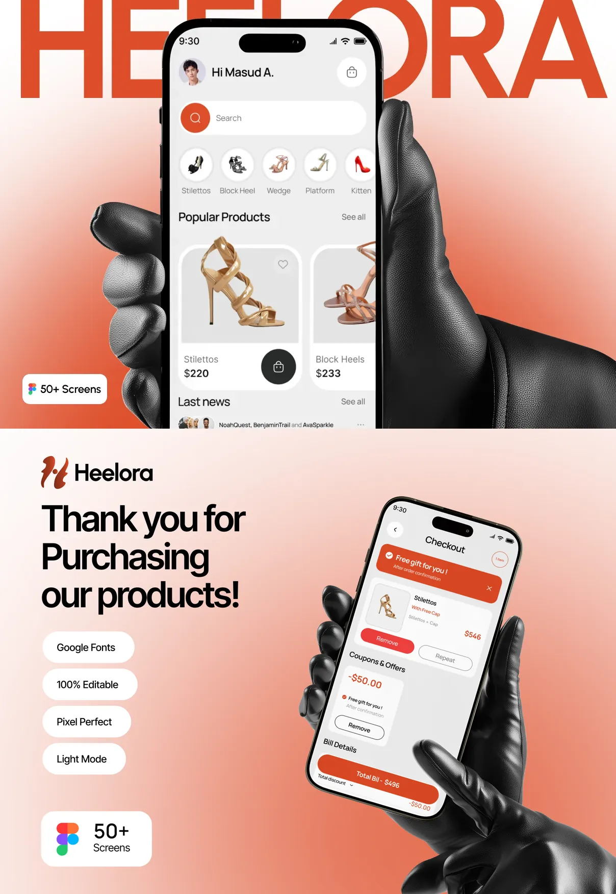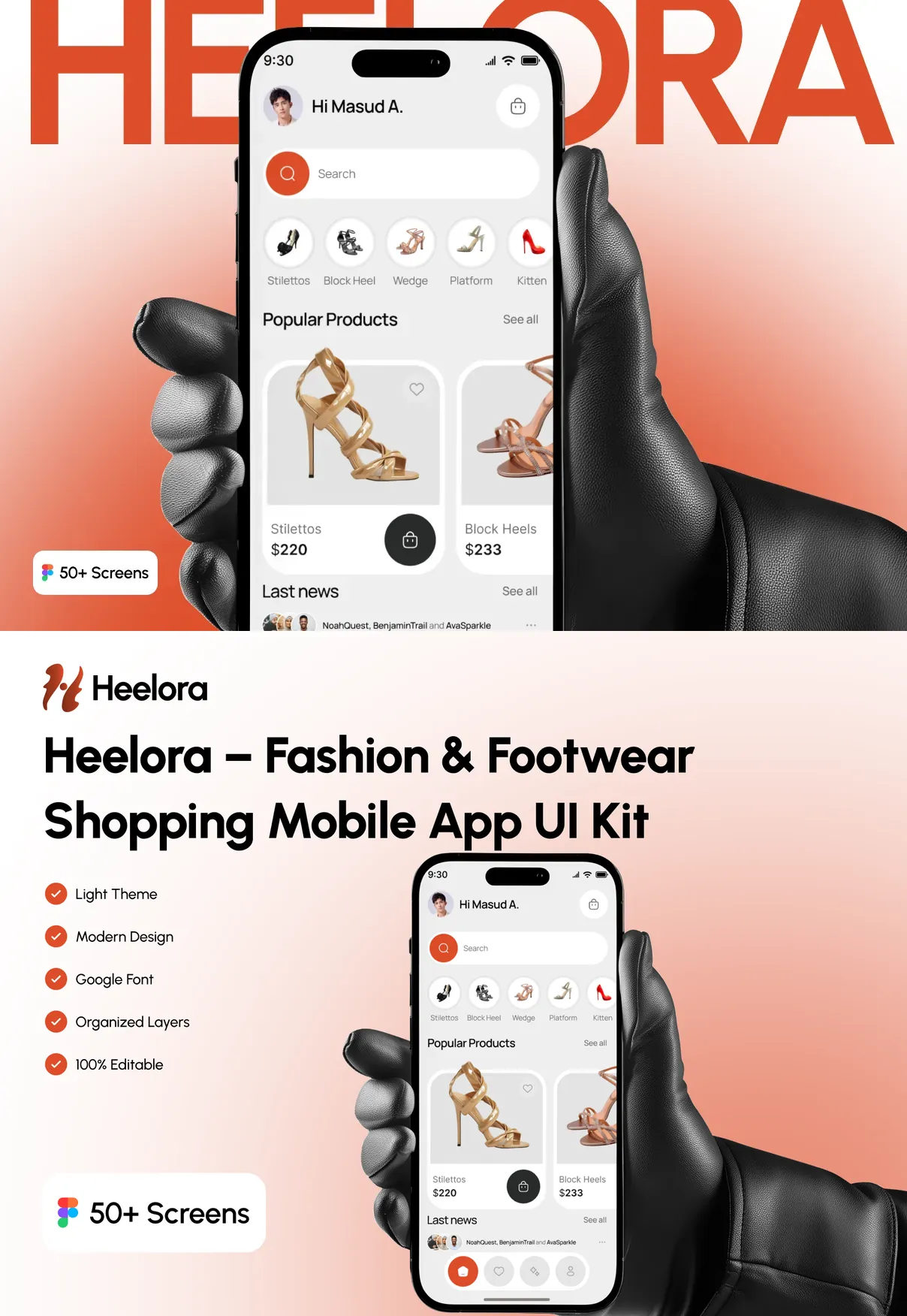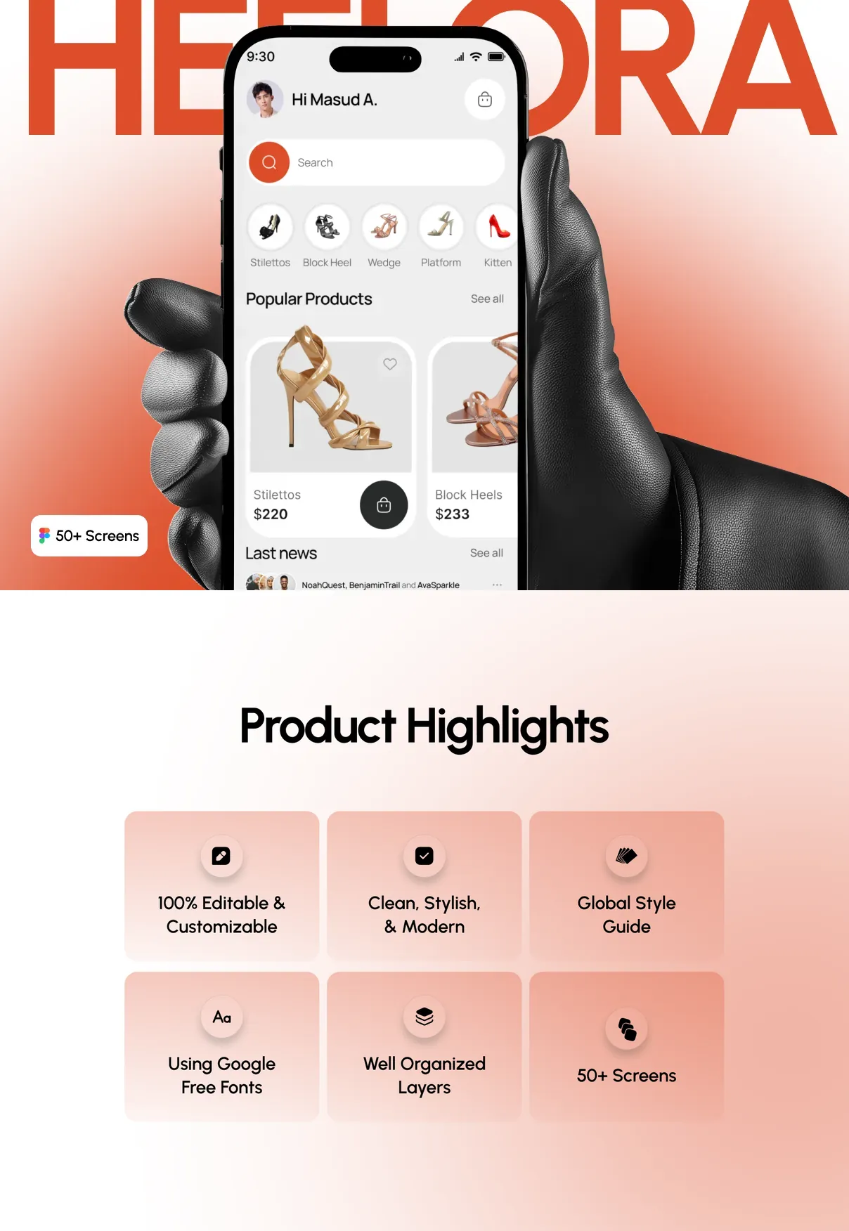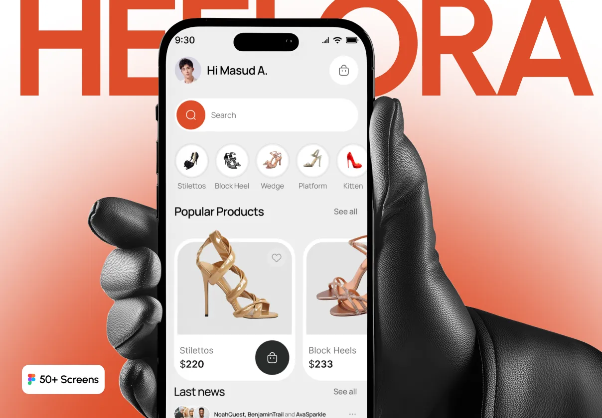 Perfect for fashion startups, footwear brands, online clothing stores, and ecommerce platforms, Heelora UI Kit provides a strong design foundation to build a scalable, stylish, and modern fashion shopping experience.