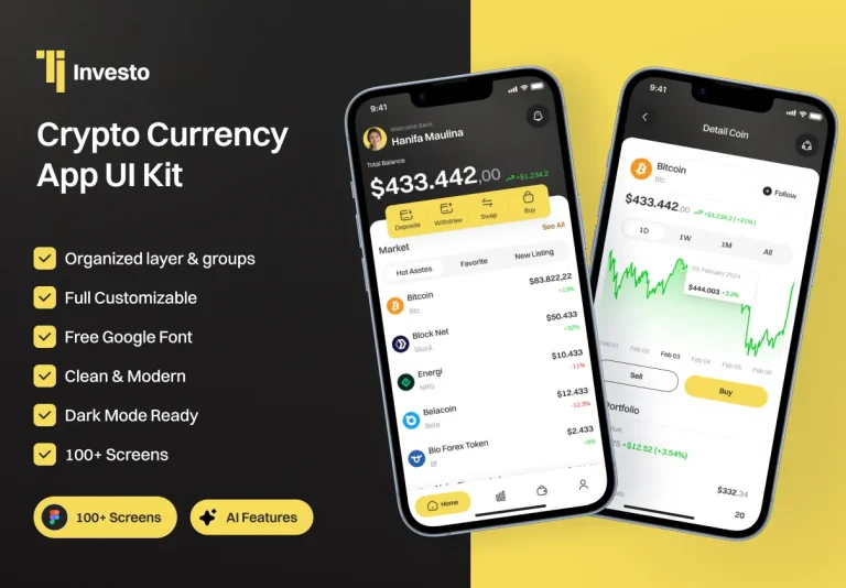 Investo – Crypto Currency App UI Kit Figma Resources on UI8