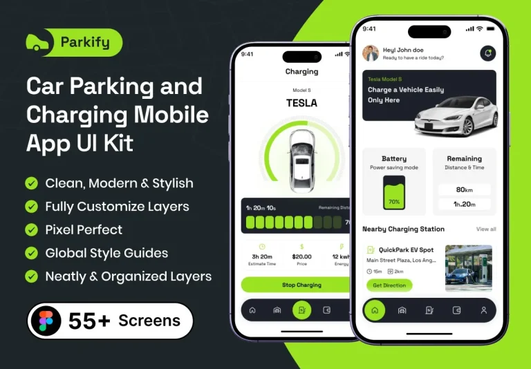 Parkify – Car Parking and Charging Mobile APP UI Kit Figma Resources on UI8