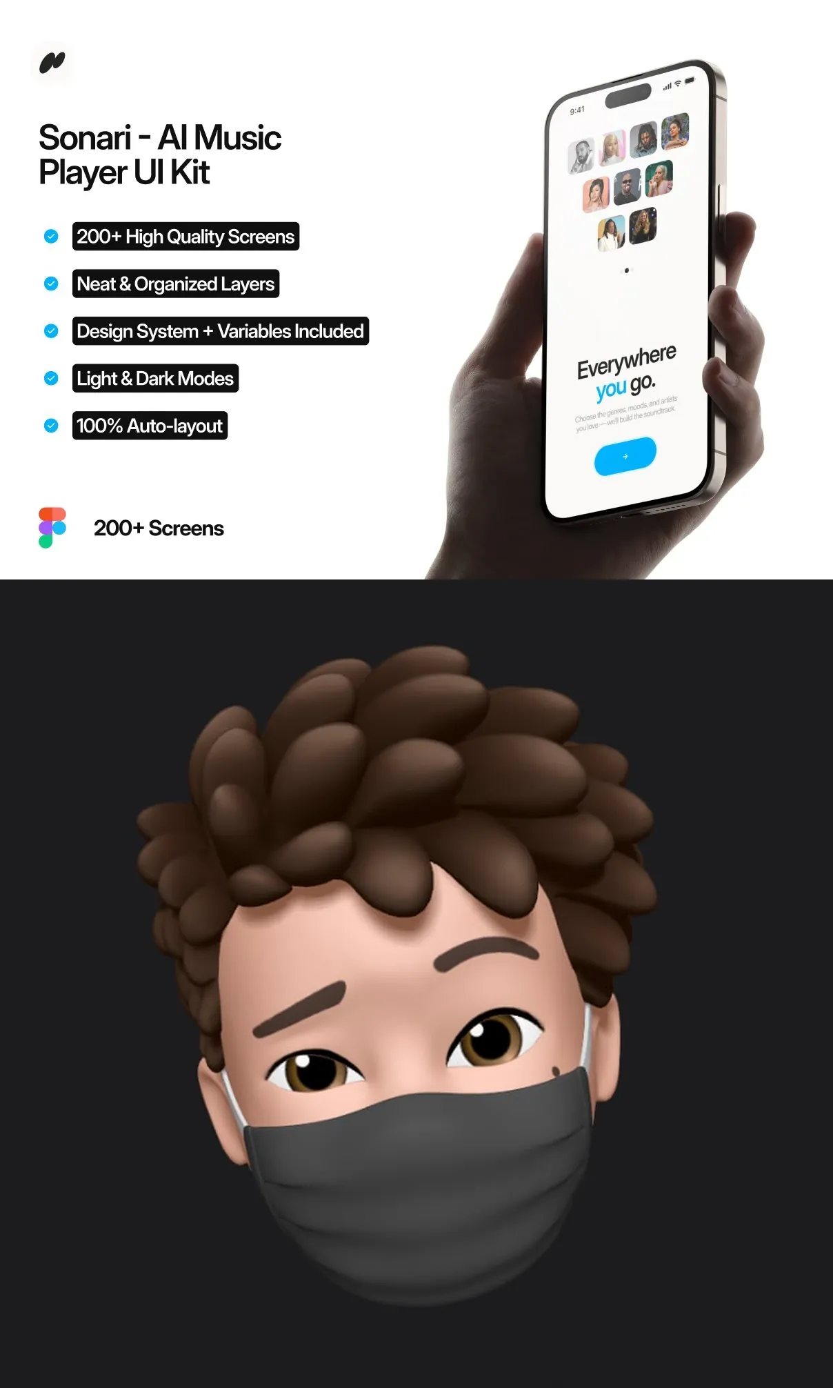Sonari AI Music Player UI Kit is the ultimate UI solution for designers seeking to create cutting-edge music applications. With its extensive screen collection, responsive auto layout, dual theme support, and vector scalability, Sonari equips you to build sophisticated, user-friendly, and aesthetically engaging music experiences. Elevate your music app design process and deliver flawless interfaces swiftly with Sonari.
