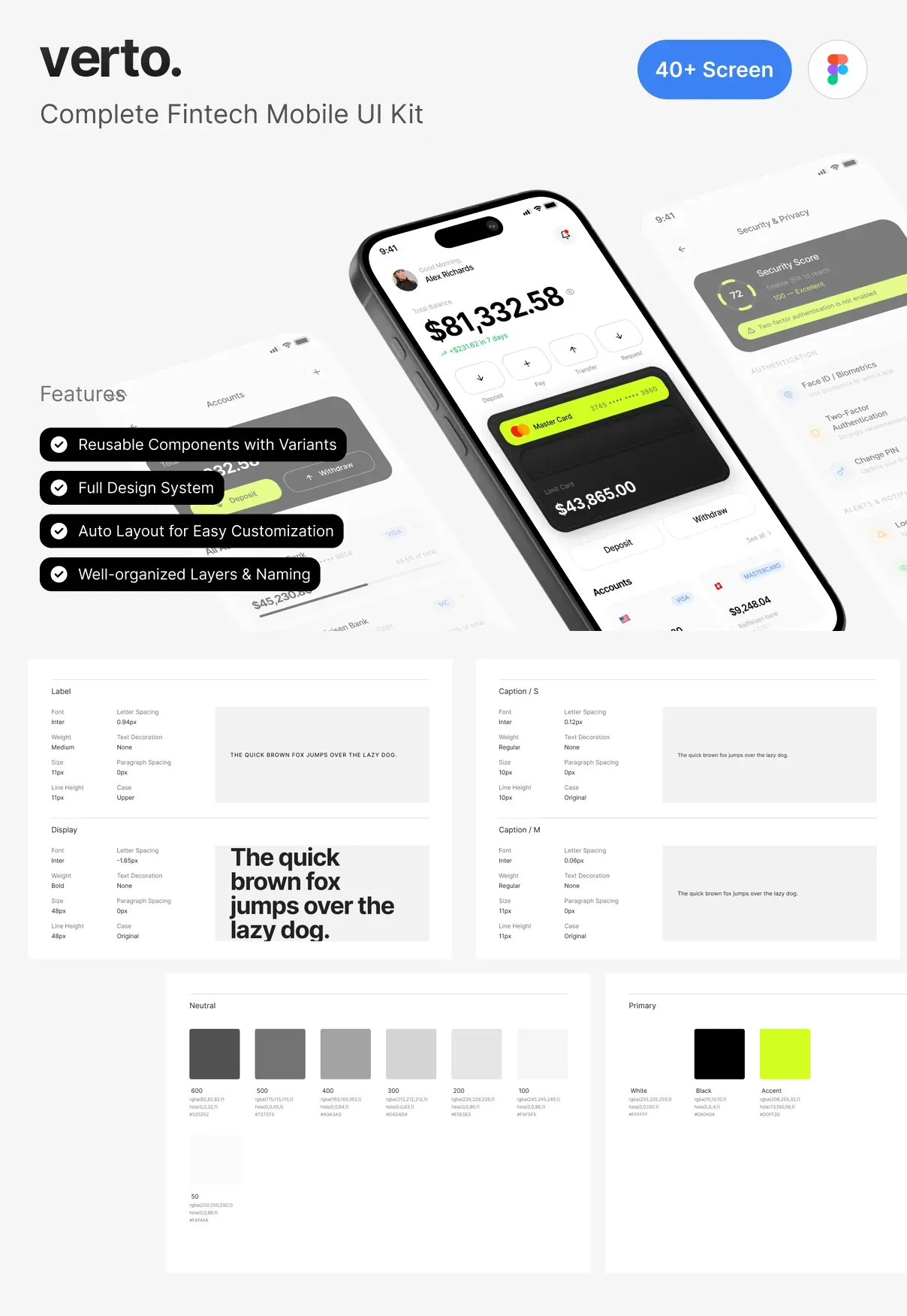 - Full Design System (Colors, Typography, Spacing)